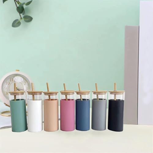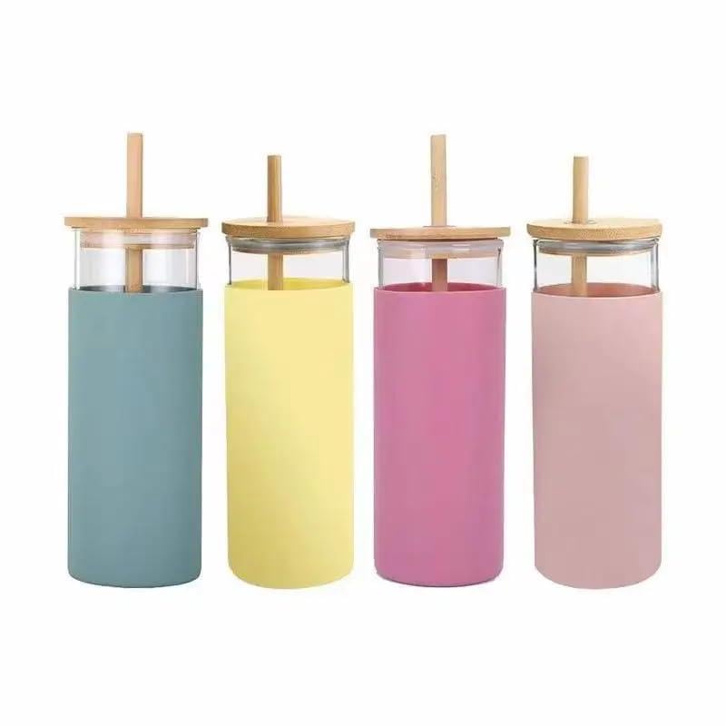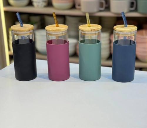 Generic - حاوية قهوة من البوروسيليكات - زجاج فاخر مع غطاء بامبو خشبي، اغلاق محكم، سعة 500 مل، لمسة نهائية شاليمة انيقة، مناسبة للمشروبات الساخنة والباردة، خيارات الوان عشوائية