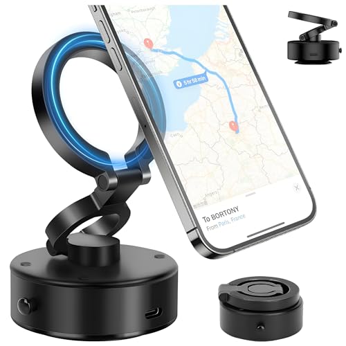 BORTONY - حامل جوال للسيارة من بورتوني، حامل جوال مغناطيسي يدور 360 درجة للسيارة، حامل جوال كهربائي بقاعدة شفط مفرغة من الهواء 【كوب شفط قوي】حامل موبايل للسيارة متوافق مع جميع الهواتف الذكية
