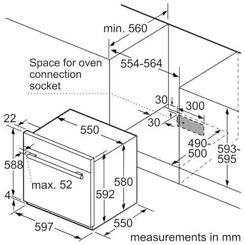 BOSCH - فرن غاز مدمج مع شواية كهربائية السلسلة 4 من بوش، ستانلس ستيل، 60 سم، 60 لتر، إيطالي، HGL10E150