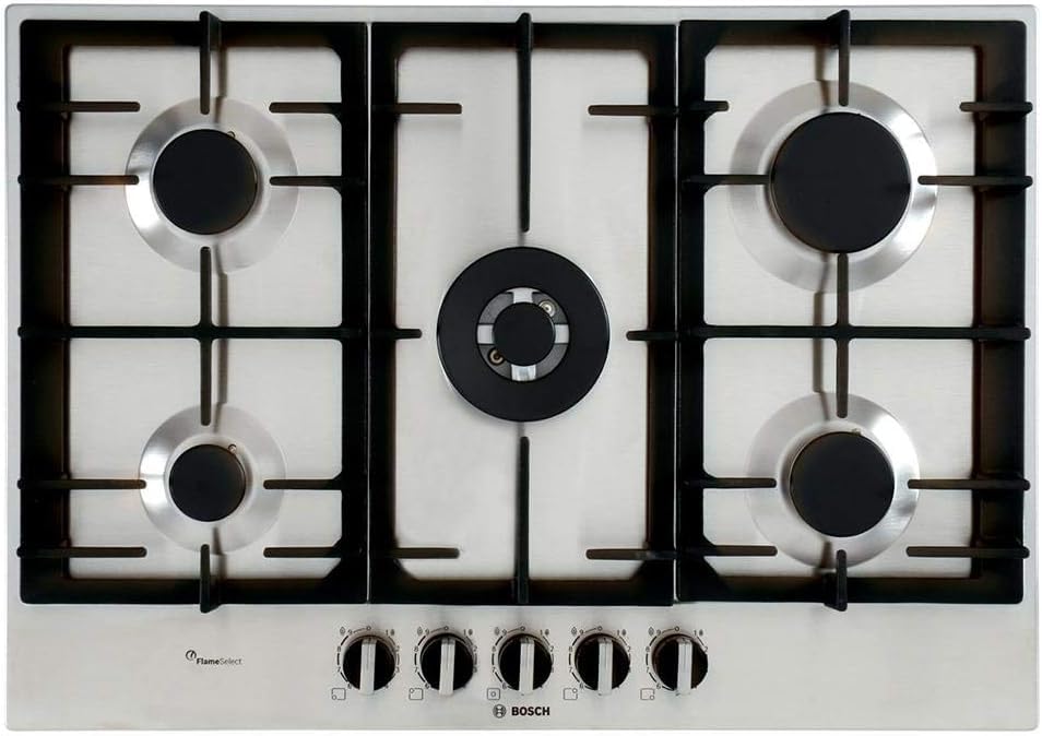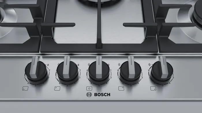 BOSCH - بوتاجاز غاز مقاس 75 سم من بوش، 5 شعلات، أمان كامل، ستانلس ستيل، سلسلة 6 - PCQ7A5B90