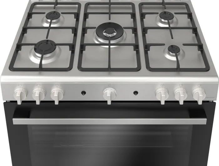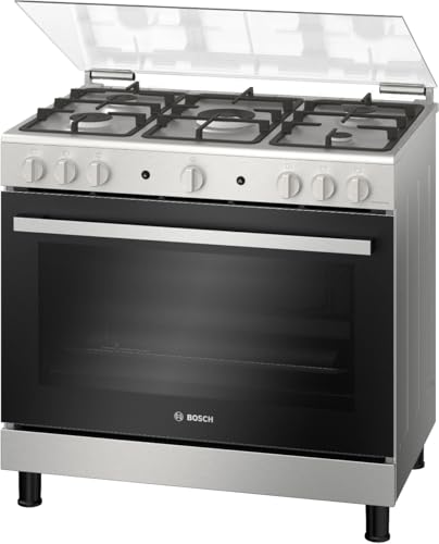 BOSCH - بوتاجاز قائم بذاته بعرض 90 سم مع 5 شعلة وفرن كبير (XXL) بسعة 147 لتر ووظيفة الشواية الدوارة من الفولاذ المقاوم للصدأ من بوش – سلسلة 2، موديل HGV1F8Y50S
