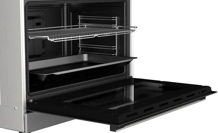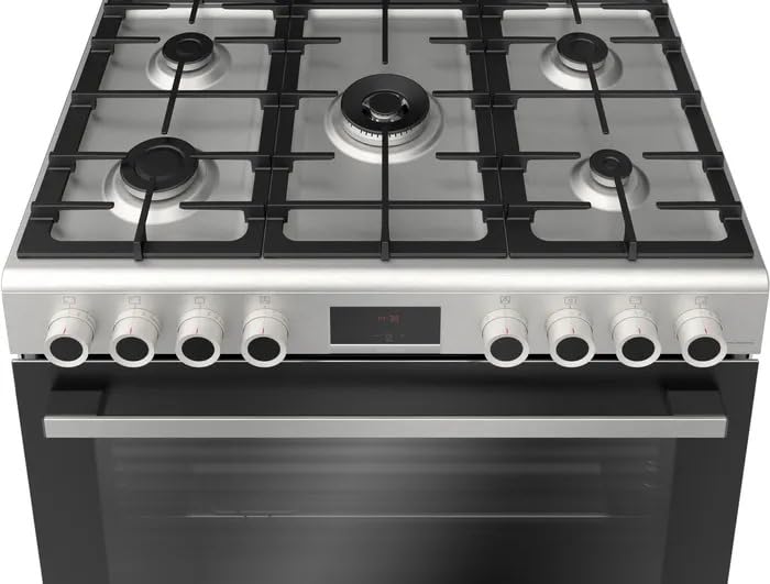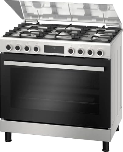 BOSCH - بوتاجاز غاز قائم بذاته HGP3I8W50S من السلسلة 6 مصنوع من فولاذ مقاوم للصدأ مع 5 شعلات، فرن كبير للغاية بسعة 145 لتر وشواية وبطانة تنظيف تحفيزي من بوش، 90 سم
