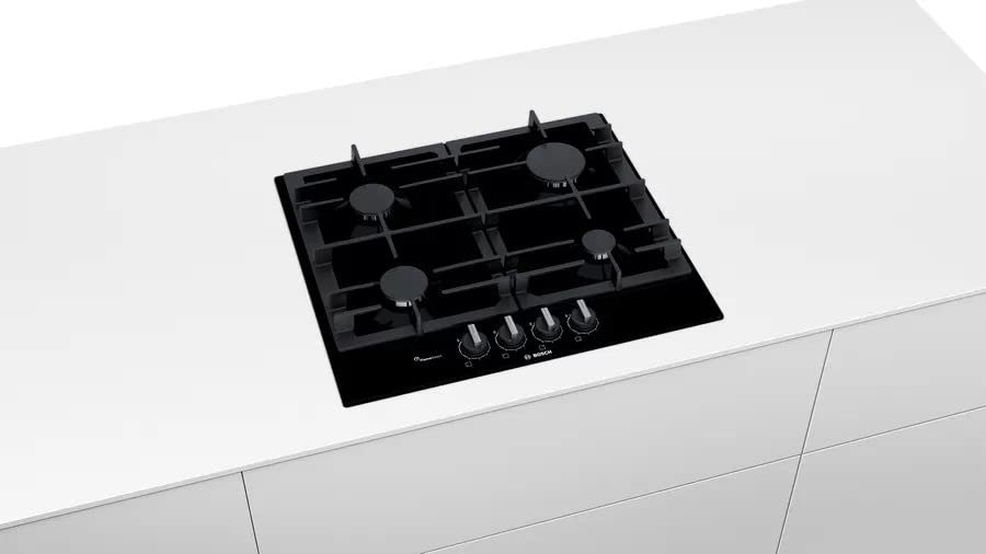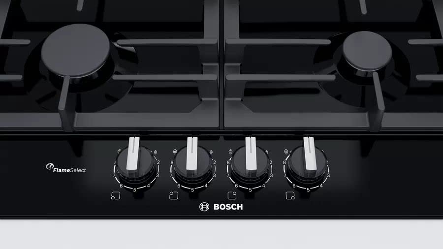 BOSCH - موقد غاز سلسلة 6 مقاس 60 سم من بوش - ستيل مطلي بالمينا - 4 شعلات - مقلاة تدعم الحديد الزهر الطويل مع أقدام مطاطية - تسعة مستويات طاقة محددة بدقة - صُنع في إسبانيا - بدون اطار