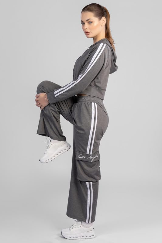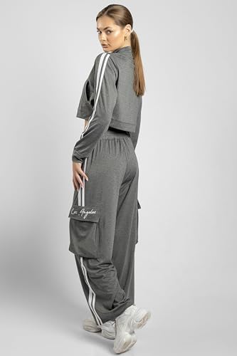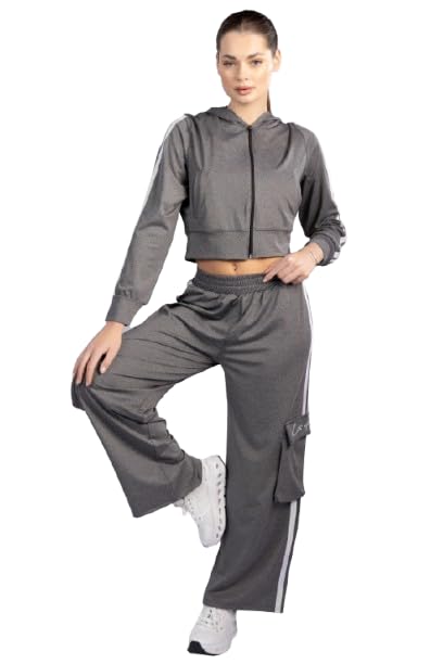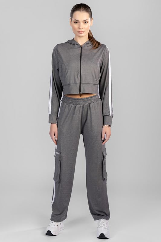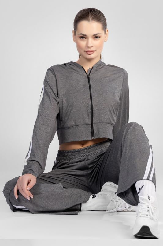 BOSHAMA - طقم بدلة رياضية مكون من جاكيت وبنطلون لجينجز للنساء من بوشاما، مقاس M، اسود - bosh5048 M