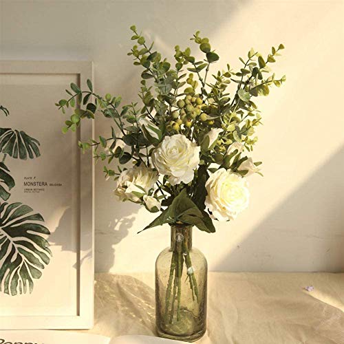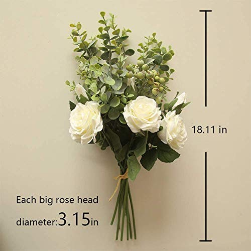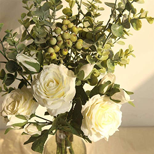 BOSHIYA - زهور صناعية من الحرير مع أوراق الأوكالبتوس والتوت لتزيين حفلات الزفاف والطاولات والديكور المنزلي من بويشا، قطع زينة وسطية منزلية أبيض