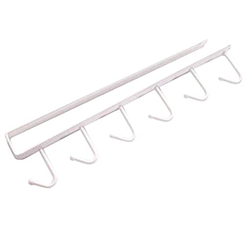 Spaceshoop - رف لحمل الأطباق بشكل حرف U من بوسيدينج، منظم حمام ومطبخ متعدد الخطافات لتعليق أكواب القهوة والنبيذ، حامل من الحديد 100% مع 6 خطافات للتثبيت على الباب، أبيض