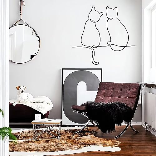 - 【سهلة التركيب】🐈 - الهدية الفنية الجدارية المعدنية على شكل قط والمصنوعة من سلك معدني تتطلب مسمارين فقط لتعليقها على الحائط.