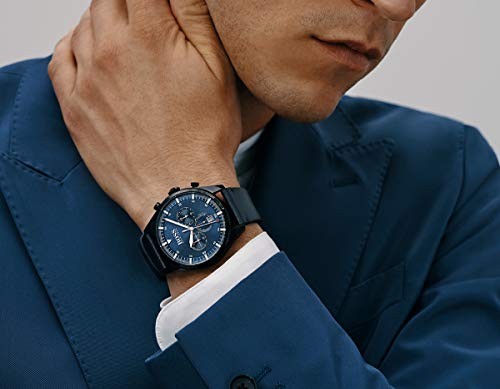BOSS - ساعة بوس للرجال انالوج كوارتز بسوار جلدي 1513711 لون ازرق 44 ملم أزرق mm حزام