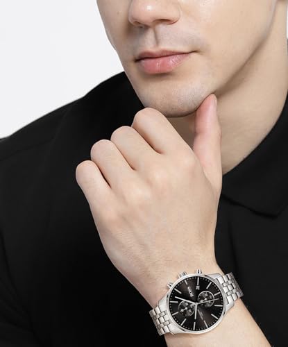Hugo Boss - ساعة كرونوجراف كوارتز للرجال من بوس، سوار فضي من فولاذ مقاوم للصدأ - 1513869