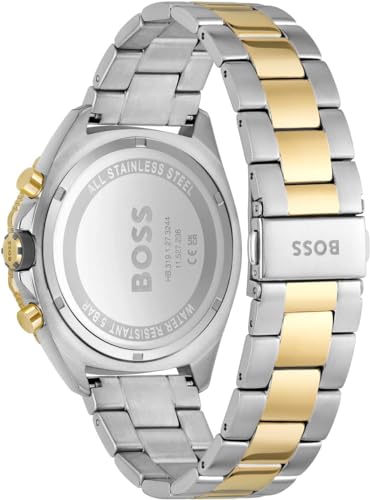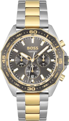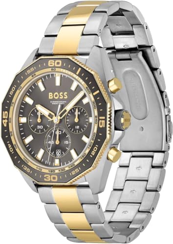 BOSS - ساعة كرونوغراف كوارتز للرجال بسوار من الفولاذ المقاوم للصدأ بلونين من بوس وسوار بلون رمادي، موديل 1513974