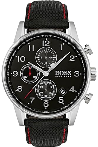 Hugo Boss - ساعة يد من هيوغو بوس بمينا أسود وسوار قماشي للرجال - 1513535، انالوج بعقارب
