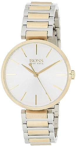 Hugo Boss - ساعة بقرص فضي وسوار معدني للنساء من هوجو بوس 1502417، انالوج بعقارب