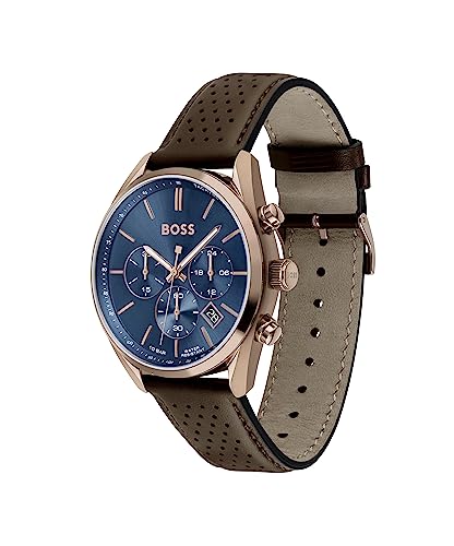 BOSS - ساعة كوارتز كرونوغراف شامبيون للرجال من بوس، بني، بسوار يد