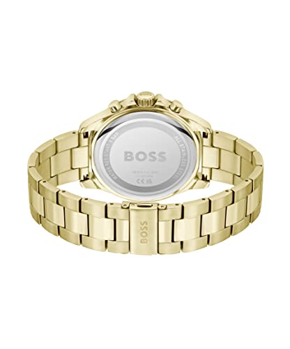 BOSS - بوس ساعة كرونوغراف بهيكل من الستانلس ستيل وسوار بحلقات للرجال تروبر اللون: مطلية بالذهب الموديل: 1514059 بمينا أخضر