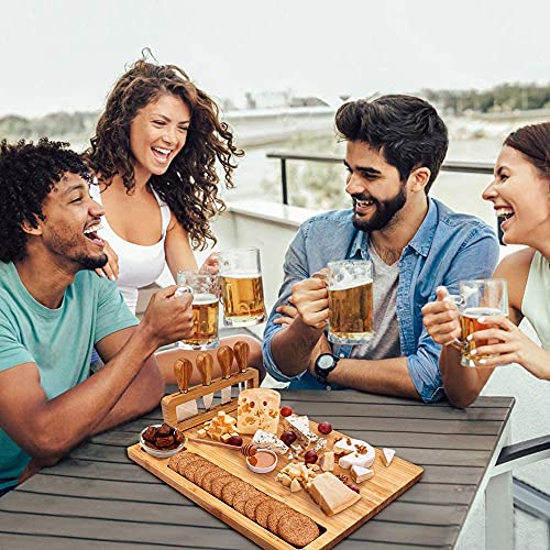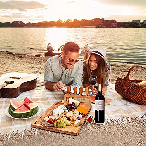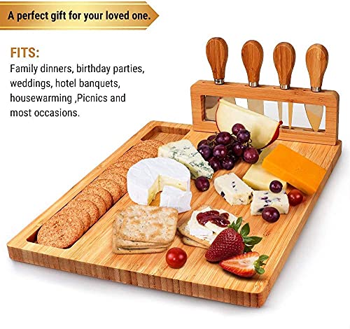 - لوح جبن بتصميم فريد: حامل أدوات قابل للإزالة مع 4 مجموعات طعام للجبن. ملعقة مسطحة وقطاعة وشوكة جبن وسكين على شكل قلب. مقابض من الخيزران، آمنة وسهلة الإمساك..