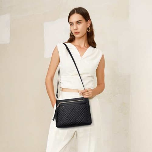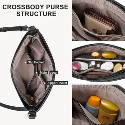 Bostanten - بوستانين شنط كروس مبطنة للنساء من الجلد النباتي، شنطة كتف متعددة الجيوب مع حزام قابل للتعديل