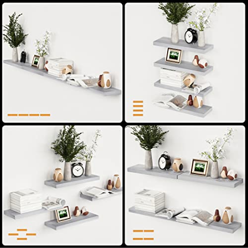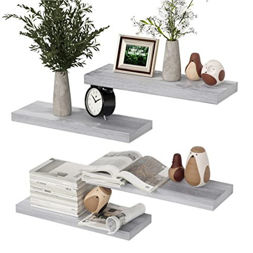 Boswillon - أرفف معلقة عصرية تثبت على الحائط مع دعامات غير مرئية لديكور الحائط وبيت المزرعة وغرفة النوم والحمام والمطبخ وغرفة المعيشة من بوسويون- لون رمادي، 4 قطع