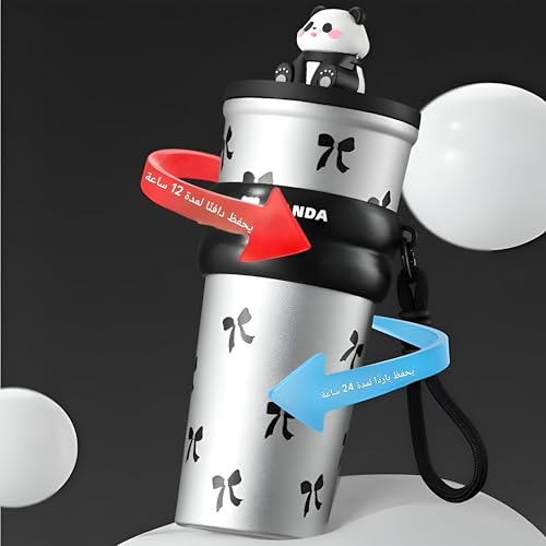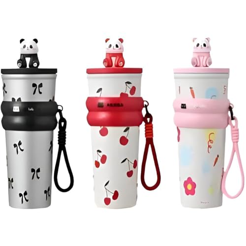 Generic - زجاجة باندا 700 مل معزولة من الفولاذ المقاوم للصدأ مع شفاطة وغطاء غبار وتصميم محمول رائع للجيم والسفر والمكتب والمشي لمسافات طويلة (شكل A)