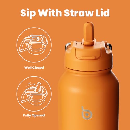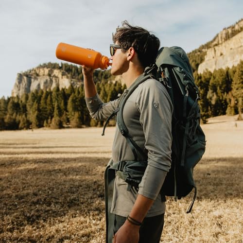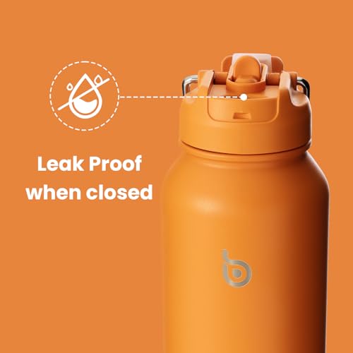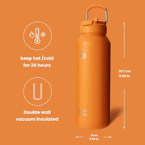 BOTTLE BOTTLE - زجاجة مياه رياضية من الفولاذ المقاوم للصدأ معزولة، مزودة بشفاطة وحامل حبوب دواء، 1.18 لتر (برتقالي) من بوتل بوتل