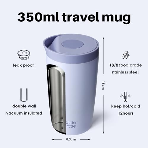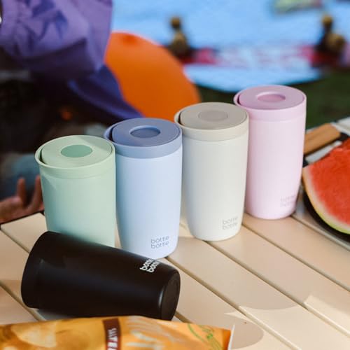 BOTTLE BOTTLE - كوب سفر معزول من الستانلس ستيل، 350 مل، غطاء بزر ضغط، يحافظ على البرودة لمدة 12 ساعة، يحافظ على الحرارة لمدة 8 ساعات، تصميم انيق (ازرق)