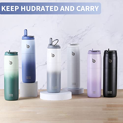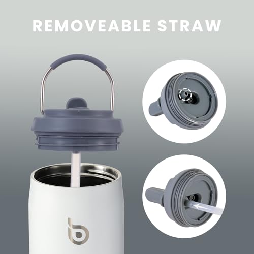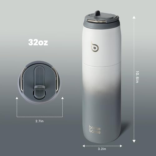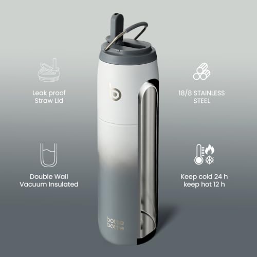 BOTTLE BOTTLE - زجاجة مياه رياضية من الفولاذ المقاوم للصدأ مع شفاطة وغطاء، ترمس حراري معزول بتفريغ الهواء 946 مل، تحافظ على البرودة لمدة 24 ساعة، السخونة لمدة 12 ساعة، بفتحة واسعة مانعة للتسرب من بوتل بوتل، رمادي