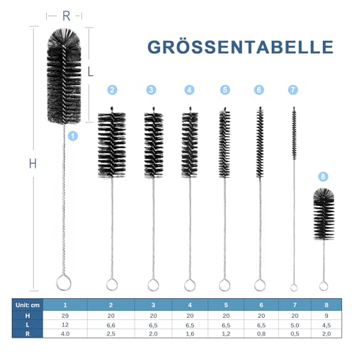 - COMPLETE SET OF VARIOUS SIZES - Includes 8 versatile brushes: a 29cm brush, multiple 20cm brushes and a small 9cm brush, to meet all your cleaning needs.