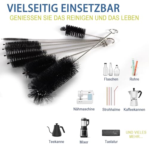 - Clever Design For Deep Cleaning - Includes a 29cm brush with dense nylon bristles at the end to scrub the bottom of narrow bottles without scratching. Equipped with a removable ring to keep brushes organized and easy to grab.