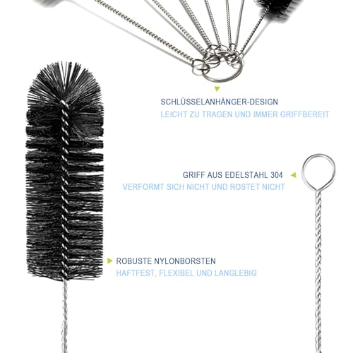 carve ideas - Bottle Brush Set of 8 Nylon Cleaning Brushes for Straws and Pipes, for Narrow Neck Bottles, Bottles, Jars and Teapot Spout (Black)