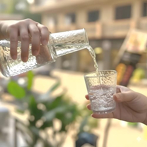 - تضمن سعة 1 لتر مساحة تخزين واسعة للعصائر أو الماء أو الشاي، بينما يحافظ الزجاج الكريستالي على نقاء ومذاق كل مشروب.