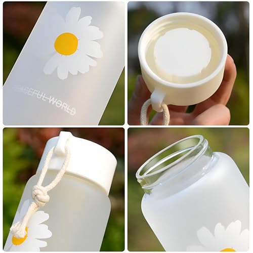 Generic - زجاجة صغيرة الحجم بسعة 500 مل مع سطح غير لامع ونمط اقحوان مع حبل متين، اختيار مثالي ومناسب للطلاب لحمل الشاي او العصير او الماء بسهولة