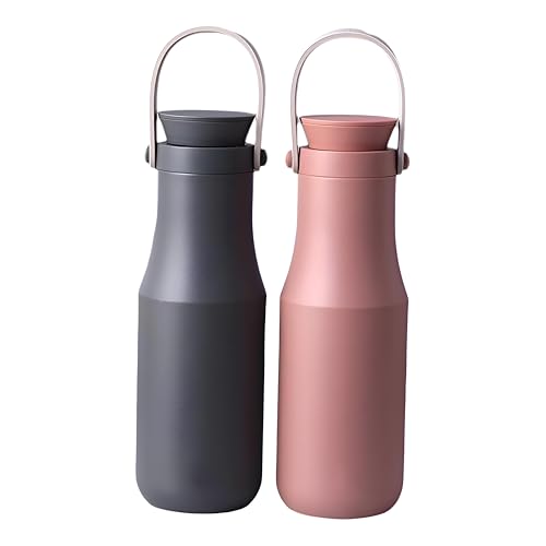 Generic - زجاجة - قارورة معزولة بتفريغ الهواء من الستانلس ستيل بغطاء مزدوج مع حزام يد، تحافظ على المشروبات ساخنة لمدة 8 ساعات او باردة، حجم محمول 470 مل مع خيارات الوان مختلطة (قطعة 2)