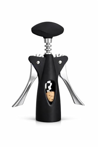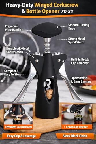 Generic - فتاحة زجاجات مع مقبض جناح، مفتاح معدني متين مع مقبض دوار سلس، اداة استخراج الفلين سهلة السحب وفتاحة اغطية، اسود (XD-84)