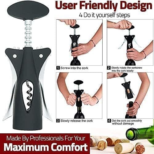 - فتاحة زجاجات سهلة الفتح - تفتح الزجاجات بسلاسة دون كسر الفلين أو جهد إضافي. تمسك الحلزونية المعدنية القوية بإحكام، لذلك تجنب الفوضى والإحباط أثناء الوجبات أو التجمعات.