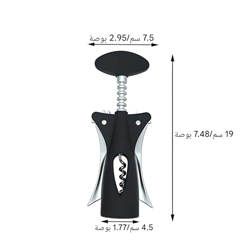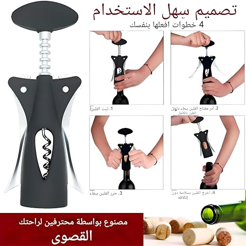 - مفتاح يدوي مصمم لزجاجات النبيذ والبيرة، يتميز بأذرع مجنحة لإزالة الفلين بسرعة دون الحاجة إلى الكهرباء.