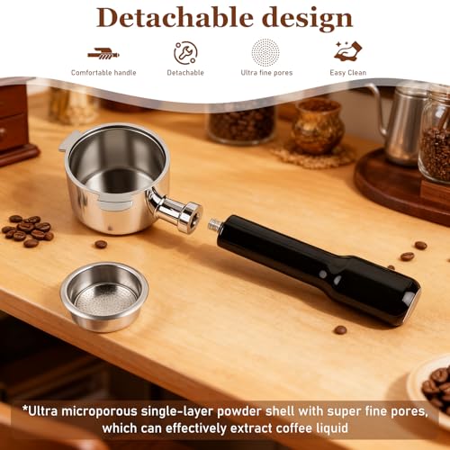 - مادة عالية الجودة: مصنوعة من الستانلس ستيل 304 الآمن غذائيًا، هذا الفلتر بدون قاعدة مقاوم للصدأ والأكسدة ومتين. آمن للاستخدام، يقاوم الحرارة والتآكل للحصول على نتائج اسبريسو متسقة مع كل عملية تخمير.