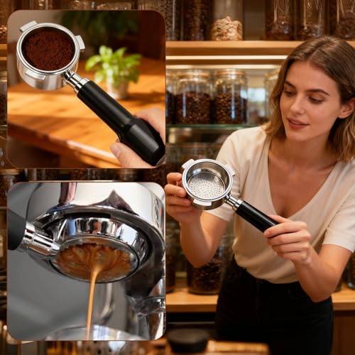 - تصميم بدون قاعدة: يسمح فلتر القهوة بدون قاعدة برؤية مباشرة لاستخراج القهوة، حتى تتمكن من اكتشاف الأخطاء على الفور عند الطحن والعبث. مثالي لتطوير الرائحة الكاملة وإنتاج الكريم المثالي مثل باريستا.