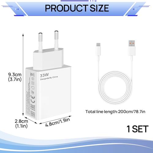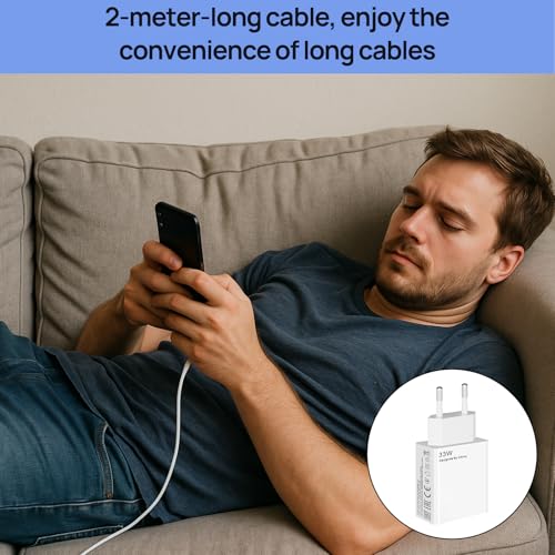 - 【شاحن لجهاز شاومي بقدرة 33 وات】مع كابل USB نوع سي بطول 2 م (أطول بنسبة 50% من الطول القياسي)، لمدى مريح يتيح الشحن في السرير أو أسفل المكتب أو بجانب الأريكة. حرية الحركة المثلى لتلبية احتياجاتك اليومية.