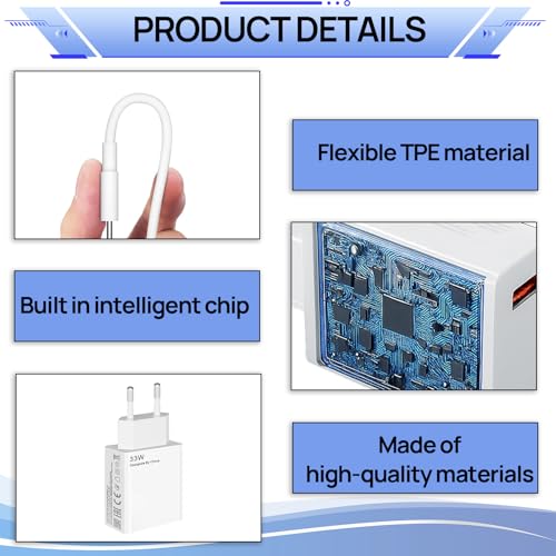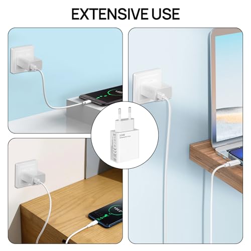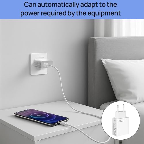 - 【شاحن بقدرة 33 وات】قوة الإدخال: 100 إلى 240 فولت كحد أقصى، قوة الإخراج: 33 وات (11 فولت/3 امبير). متوافق مع 27 وات/15 وات، تتضمن المجموعة: 1 × شاحن بقدرة 33 وات + 1 × كابل USB نوع سي بطول 2 م، مثالي للاستخدام اليومي.