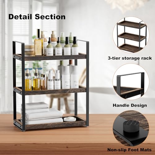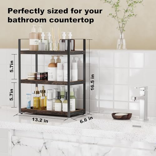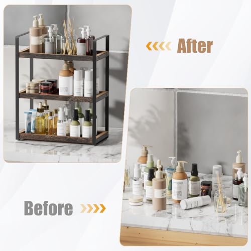 Boulphia - منظم حمام من 3 طبقات من بولفيا، منظم منضدة للتخزين، رف منضدة الحمام، رف مكياج، علبة للحوض، بني