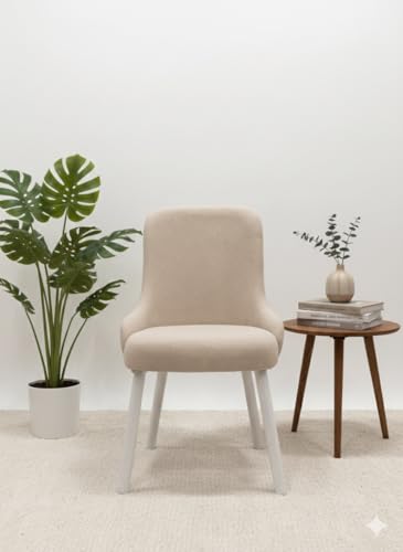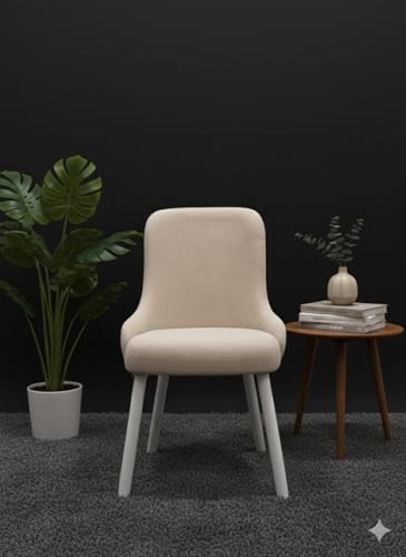 Generic - كرسي بتنجيد قماش بوكليه، بيج، أرجل خشبية بيضاء، تصميم عصري حديث، مقعد مريح للمنزل