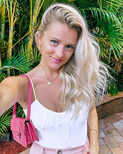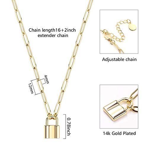BOUTIQUELOVIN - بوتيك لوفين قلادة بقفل مطلية بالذهب عيار 14 قيراط للنساء بتصميم مشبك ورق، سلسلة قفل لا تفقد بريقها
