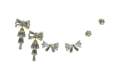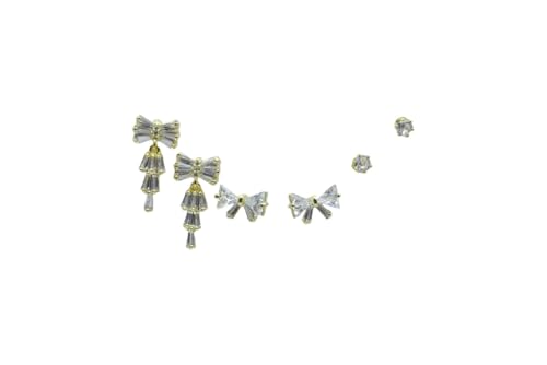 Generic - طقم اقراط بلاتينيوم بتصميم فيونكة للنساء، 6 قطع، ذهبي - اقراط 29