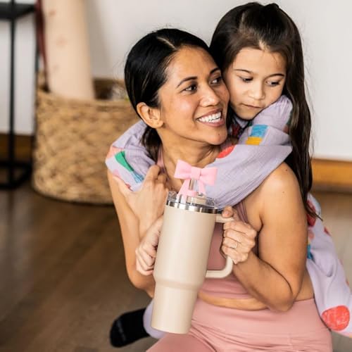 fashion mania - غطاء بشفاطة على شكل فيونكة لكوب ستانلي، أغطية بشفاطة من السيليكون للكوب مع مقبض 1.2 لتر، أغطية بشفاطة لطيفة 10 ملم