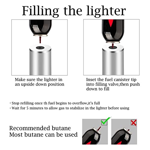 - شعلة قابلة للتعديل ولإعادة التعبئة: يمكن تعديل الشعلة بواسطة صمام غاز البوتان الموجود أسفل الجزء السفلي من الولاعات، يمكنك ضبط اللهب وفقًا لاحتياجاتك. من السهل إعادة تعبئة ولاعة البوتان مع سعة طويلة الأمد عند ملؤها بالكامل.