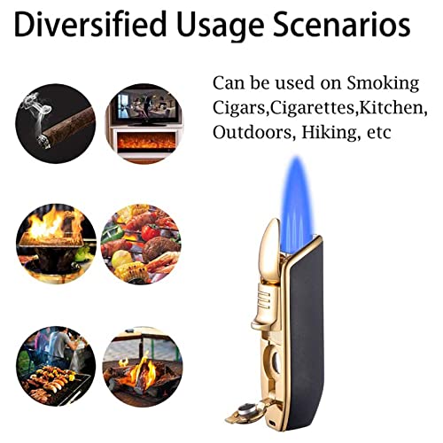 - ولاعة 3 شعلة: مع لهب نفاث ثلاثي قابل للتعديل لحرق متساوي مع غطاء أمان يفتح تلقائيًا عند الإضاءة. قوة النيران قوية بما يكفي لإشعال السيجار، وبرطمانات الشموع، ومواقد الغاز، والشواية، والتخييم، والألعاب النارية، واشعال الفحم، وما إلى ذلك. قوية، مقاومة للرياح، لهب واحد، مقاومة للرياح. (بدون البوتان)