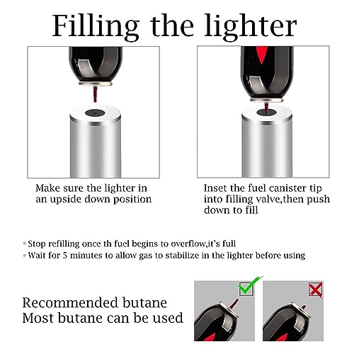 - لهب قابل للتعديل وإعادة التعبئة: يمكن تعديل اللهب بواسطة صمام غاز البوتان الموجود أسفل الجزء السفلي من الولاعات، يمكنك ضبط اللهب وفقًا لاحتياجاتك. من السهل إعادة ملء ولاعة البوتان بسعة طويلة الأمد عند ملؤها بالكامل.
