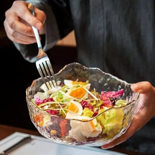 - وعاء سلطة زجاجي: يتميز بتصميم أنيق وزخرفي يضيف لمسة من الفخامة إلى طاولة الطعام. تتميز بسعة كبيرة لإعداد وتقديم مجموعة متنوعة من السلطات والمقبلات بعناية بأناقة.