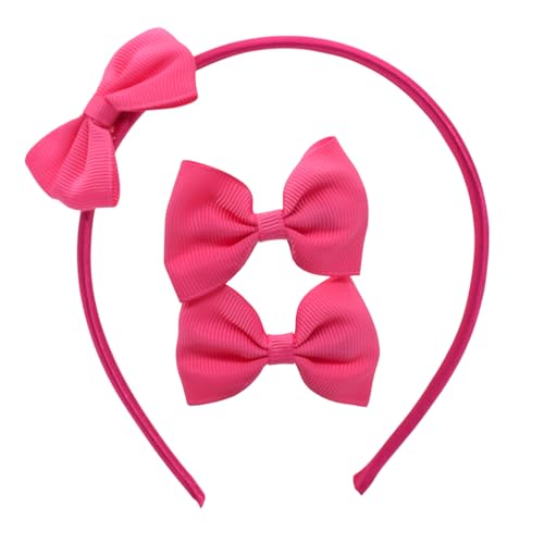 Generic - شريط راس بلاستيكي مع زوج من مشابك فيونكة صغيرة، 3 قطع - فوشيا