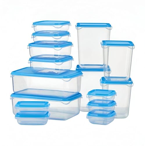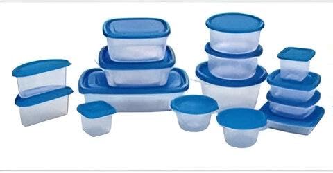- مجموعة حاويات الثلاجة الزرقاء المكونة من 18 قطعة مصنوعة من بلاستيك البولي بروبلين المتين وخفيف الوزن، مما يجعلها خيارًا موثوقًا به للاستخدام طويل الأمد. يضمن تصميمها متعدد الاستخدامات تلبية مجموعة متنوعة من احتياجات تخزين الطعام مع الحفاظ على السلامة والجودة في جميع الأوقات.