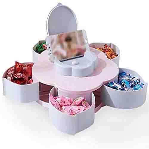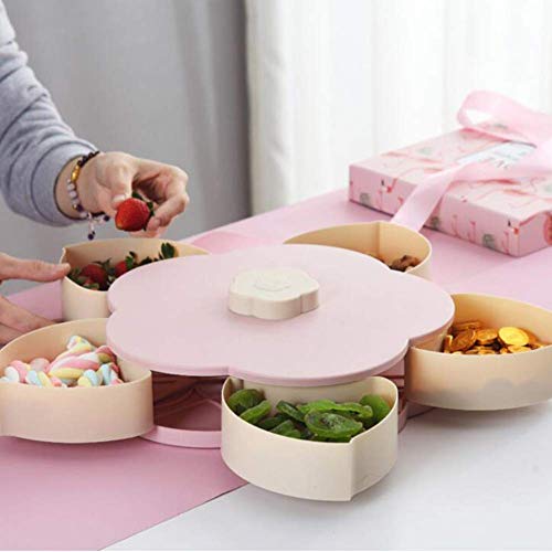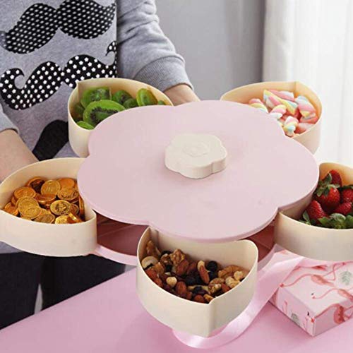 Generic - علبة حفظ طعام دوارة على شكل زهرة، طبق للوجبات الخفيفة والحلوى والفواكه المجففة، لون وردي